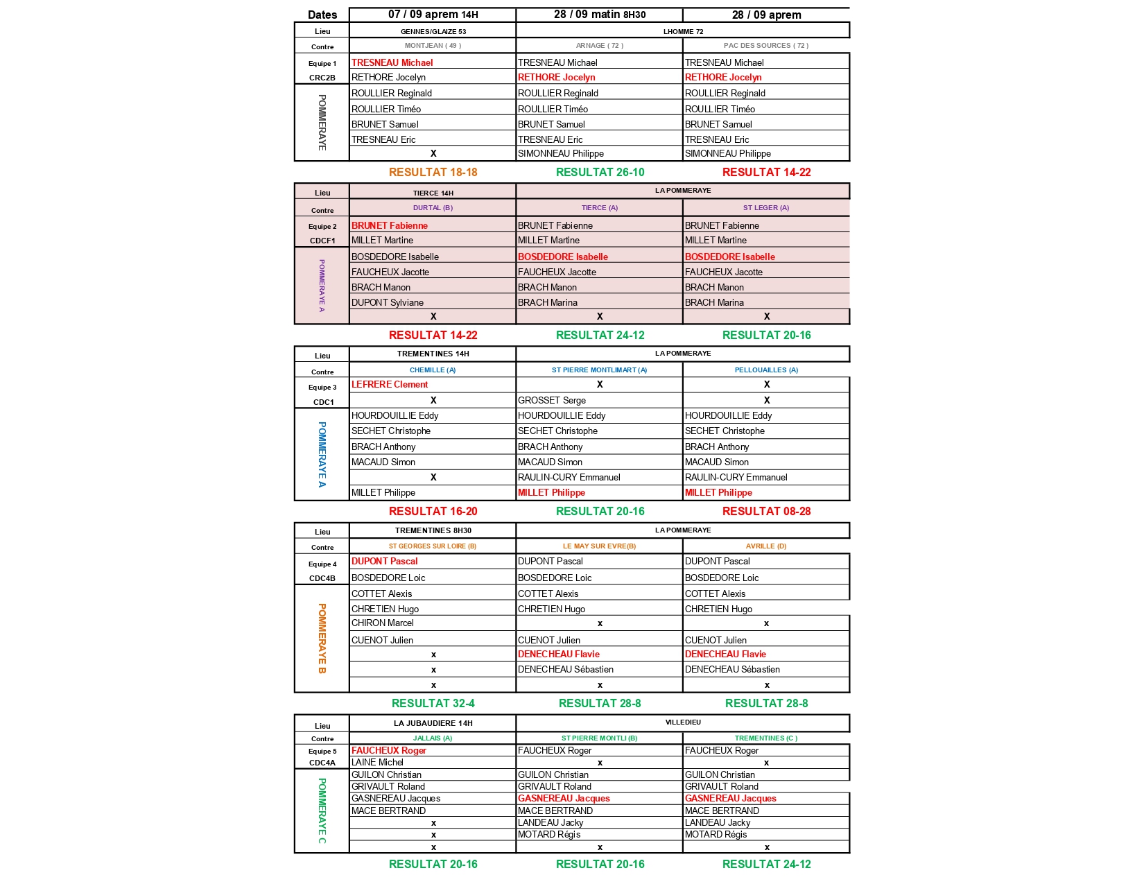 - Mercredi après-midi : défaite contre le club des Sables-d’Olonne 2 sur le score de 14 à 22.